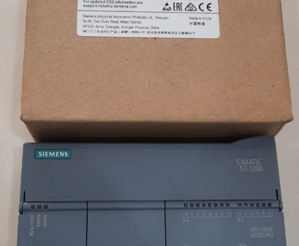 SIMATIC S7-1200, CPU 1215C, CPU nhỏ gọn, AC/DC/rơle, 2 cổng PROFINET, I/O tích hợp: 14 DI 24 V DC; 10 Rơle DO 2 A, 2 AI 0-10 V DC, 2 AO 0-20 mA DC, nguồn điện: AC 85-264 V AC ở 47-63 Hz, bộ nhớ chương trình/dữ liệu 200 KB